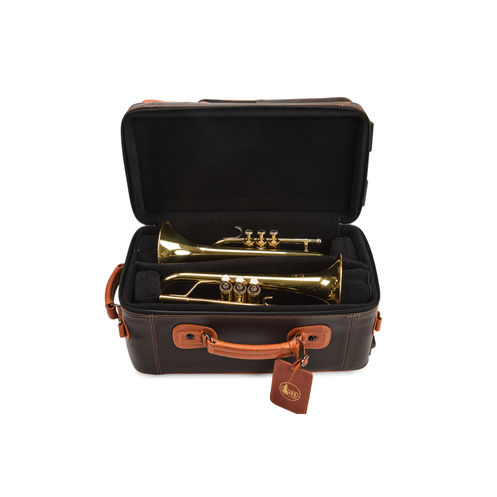 Gard Elite Fibreglass Double Cornet Case- Chocolate Brown Leather with Tan Trim
