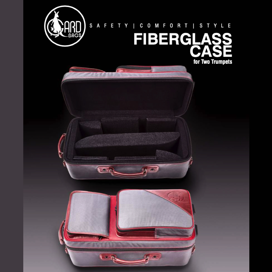 Gard Elite Fibreglass Double Trumpet Case – Synthetic Grey with Cherry Leather Trim and Red Synthetic Highlights