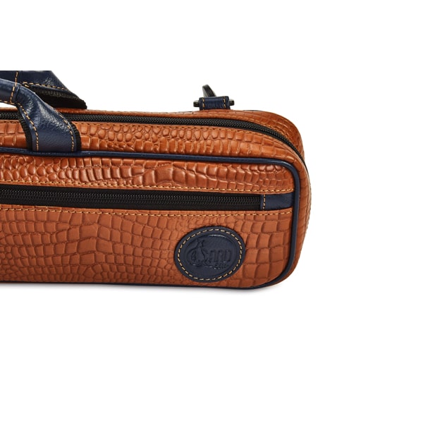 Gard Single Flute Case Cover – B foot – Leather Brown Gator w/ Blue Trim
